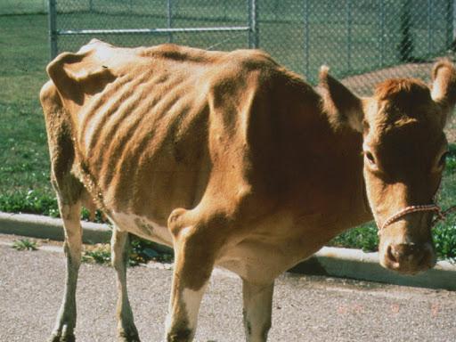 La vache perd du poids, la masse musculaire diminue, en particulier sur la croupe et les pattes postérieures. Cela réduit la valeur économique de l'animal.