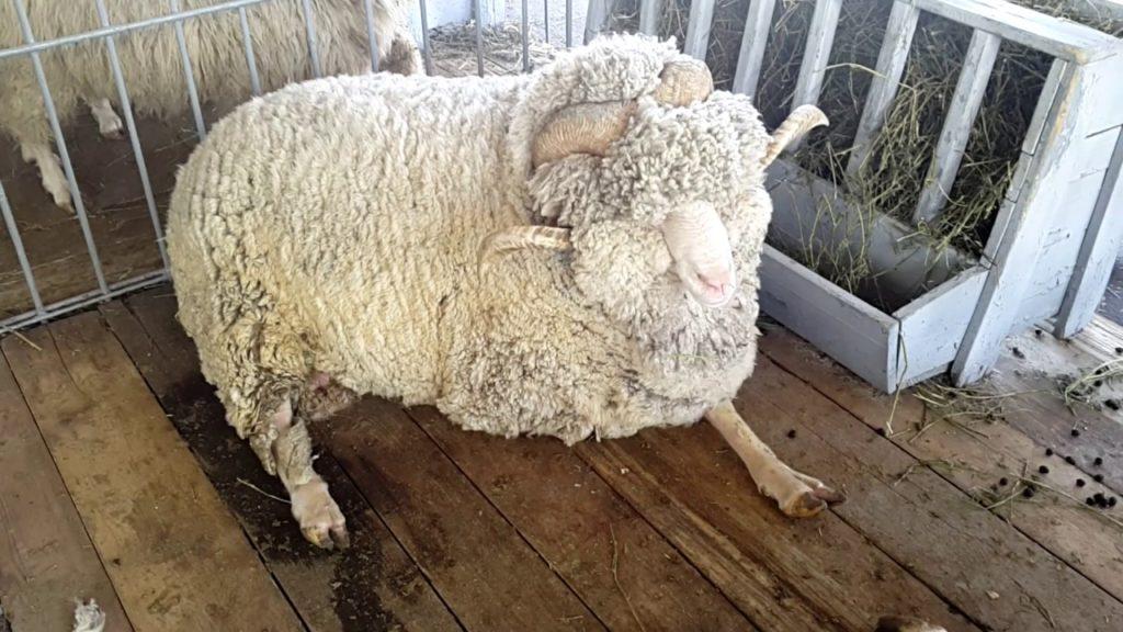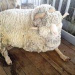 - la présence de laine blanche dense atteignant 10-11 centimètres de long chez les mâles et 8-9 centimètres chez les brebis.