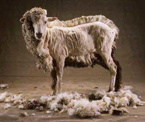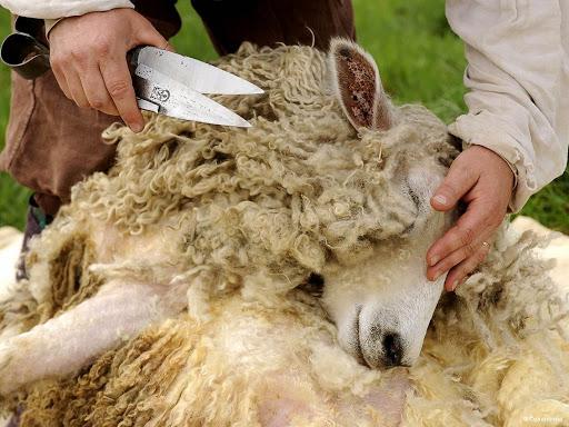 - plantez un mouton, tenez sa tête, retirez la laine de son dos;
