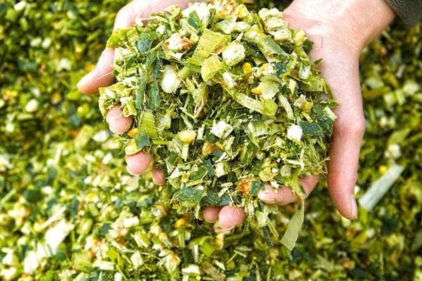 - fourrage vert - herbe fraîche dans les pâturages, ensilage en hiver;