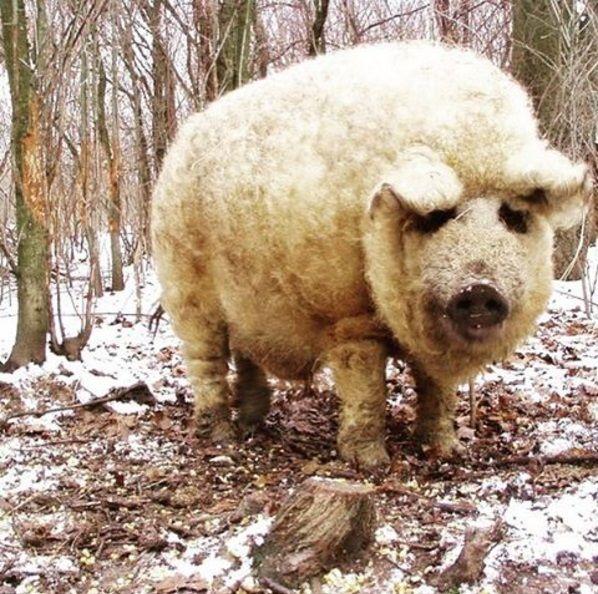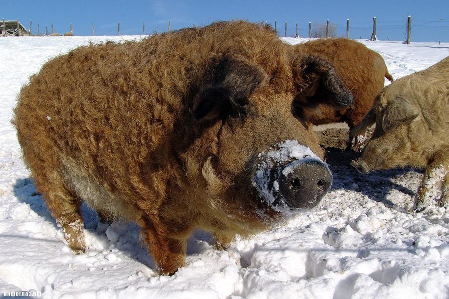 Le porc, qui ressemble à un mouton, a été élevé en Hongrie au début du XIXe siècle. Cette race s'appelait Mangalitsa. Ses représentants se distinguent par leur pelage ondulé d'origine. Par conséquent, les porcs sont souvent confondus avec un bélier. En fait, ils ont été obtenus par croisement avec des sangliers de la jungle et de gros cochons shalontai rouges.