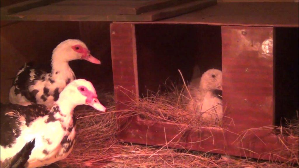 Les nids sont placés dans le coin le plus chaud et le plus sec, loin du bétail principal de canards. Le compartiment avec les nids doit être calme et sombre, sinon les oiseaux abandonneront leur couvée.