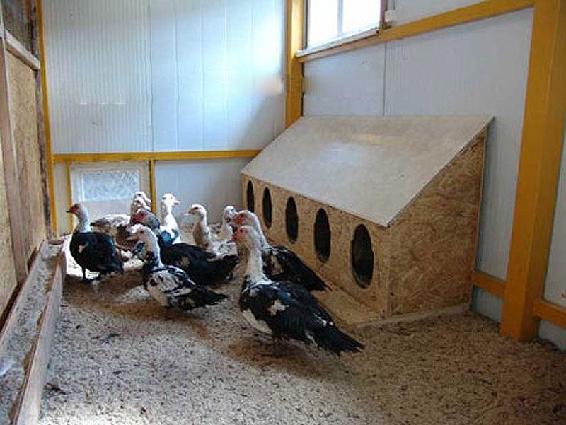 Pour les nids, on choisit des coins secs, chauds et sombres, il faut s'assurer que personne ne dérange l'oiseau, les Indo-filles ne confondent pas les nids et ne voient pas les petits canetons (dans ce cas, ils peuvent quitter la pochette et commencer à élever les bébés des autres).