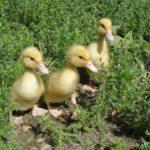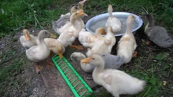 Après l'éclosion, les canetons sont transférés dans une couveuse, dans laquelle ils grandissent jusqu'à un mois. Une lampe rouge est installée dans la couveuse, qui illuminera et réchauffera les canetons. Vous pouvez les nourrir avec des aliments composés de départ.